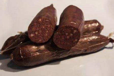 Embotit tradiocinal de l’època de matances, encara que es comercialitza tot l’any. Fet amb cars de porc, greixos i sang.